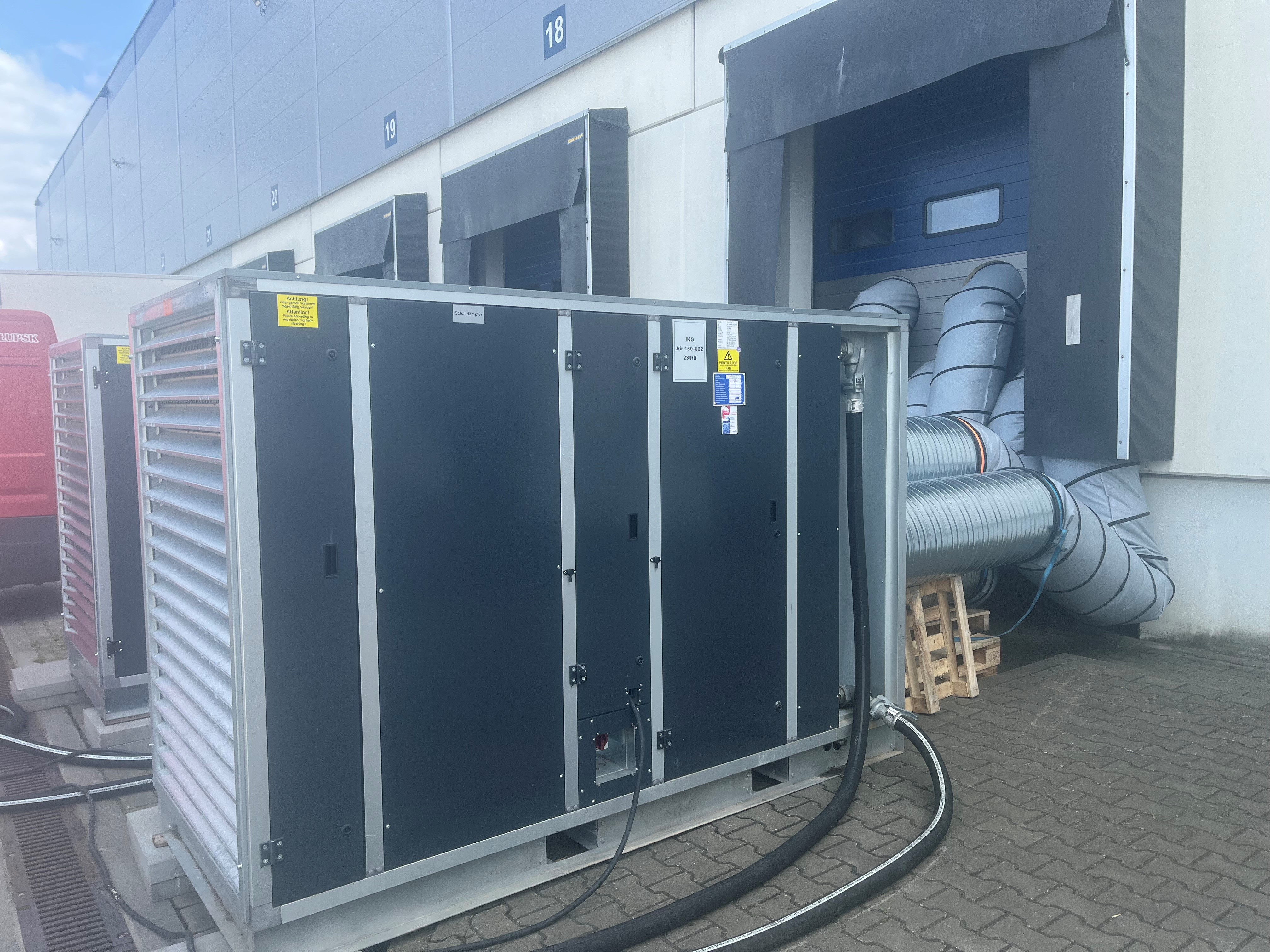 Wynajem agregatów chłodniczych wraz z centralami wentylacyjnymi pozwala skutecznie obniżyć temperaturę i zapewnić efektywne chłodzenie hal magazynowych.